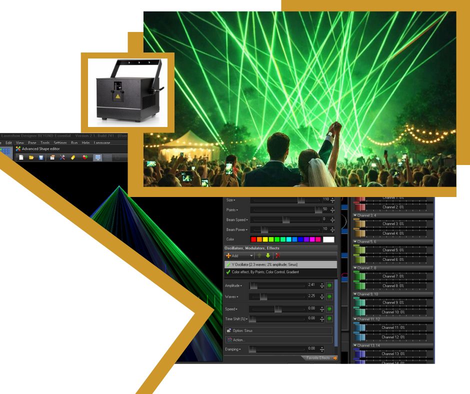 ZAUFAJ NASZEMU WIELOLETNIEMU DOŚWIADCZENIU. Choć podstawowe efekty można stworzyć stosunkowo łatwo, profesjonalne pokazy w timecodzie pod muzykę klienta wymagają dużej wiedzy i doświadczenia. Bardzo dużo firm oferuje tą pierwszą, podstawową opcję. My skupiamy się na wersji zaawansowanej. Jaka jest między tym różnica? Otóż projektowanie profesjonalnych pokazów laserowych jest trudne, ponieważ wymaga zaawansowanej wiedzy technicznej, obsługi specjalistycznego oprogramowania oraz przestrzegania zasad bezpieczeństwa. Proces ten obejmuje synchronizację wiązek z muzyką, sterowanie geometrią pola oraz umiejętność pracy z efektami przestrzennymi, co wymaga doświadczenia i precyzji. Niezbędne jest też użycie wytwornic dymu aby wiązki były widoczne, a także uwzględnienie ukształtowania terenu i mocy laserów.